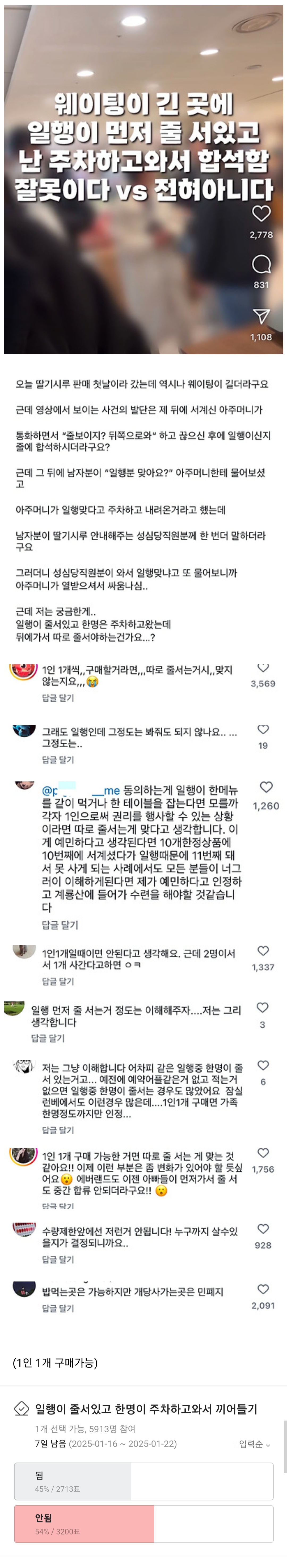 67726 일행이 먼저 줄서있고 주차하고 나중에 합석 된다 vs 안된다 8 swear 25/01/17 3413 0