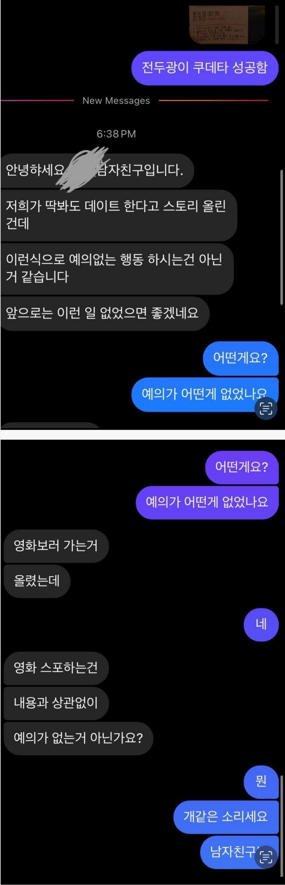 | Subject | 여사친이랑 얘기하다가 남친한테 항의받음.jpg |