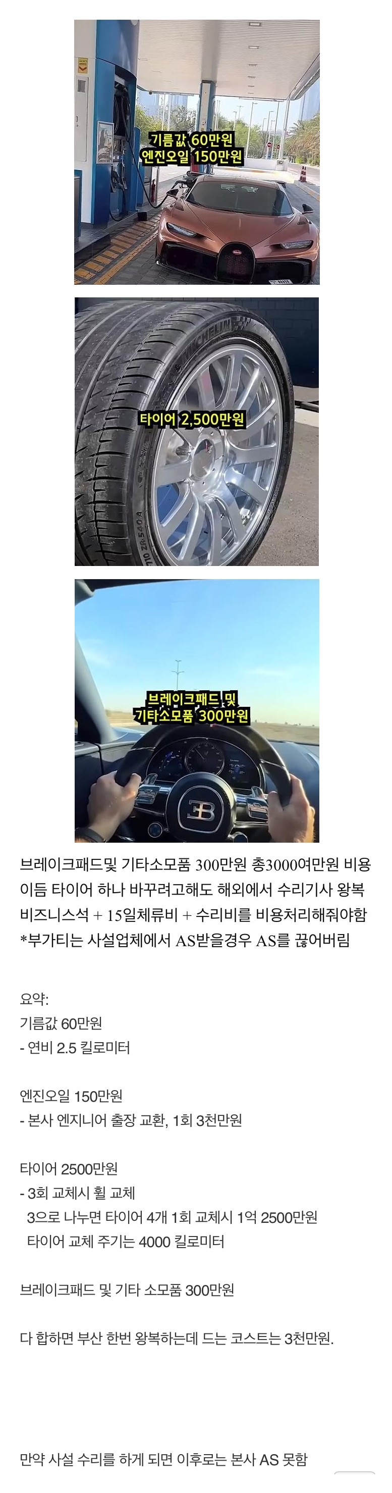 부가티로 서울 부산 왕복하면 드는 비용 0
