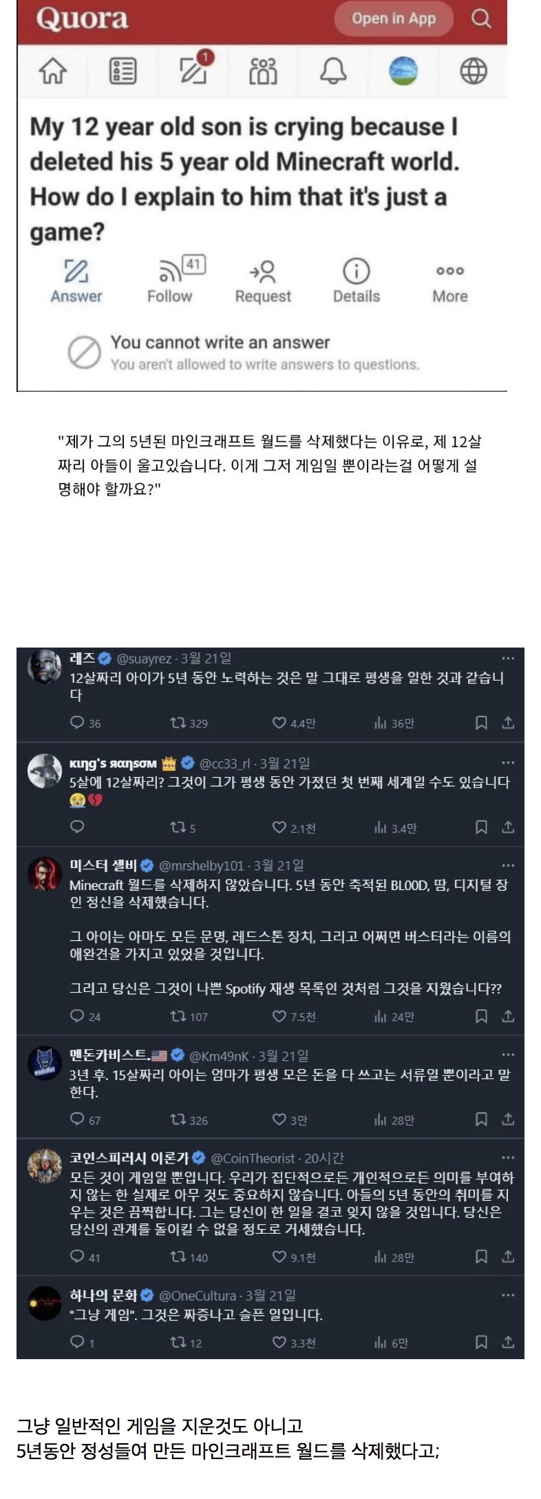 | Subject | 아들이 게임 하나 지웠다고 울어요.. |