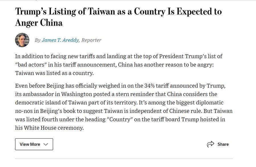 관세는 모르겠고 대만을 국가라 부르는건 참을수 없다!!!!