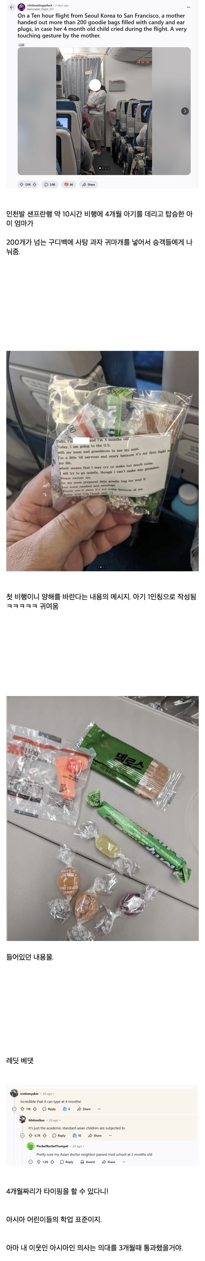 | Subject | 레딧에 올라온 비행기에 4개월 아기 데리고 탑승한 한국맘 |
