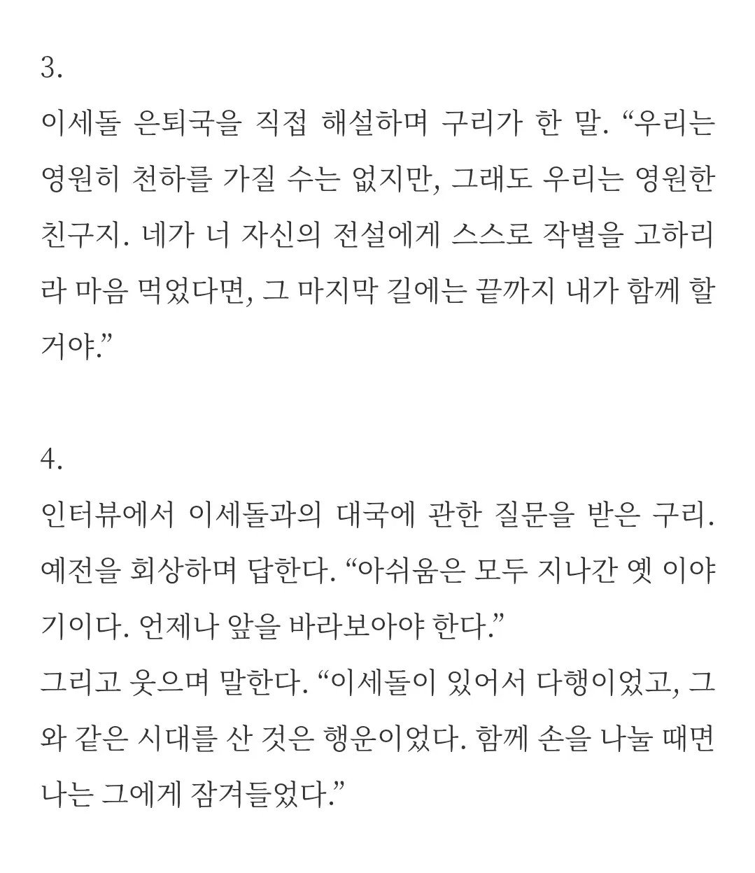 | Subject | 중국의 바둑기사 구리가 이세돌에 대해 한 말들 |