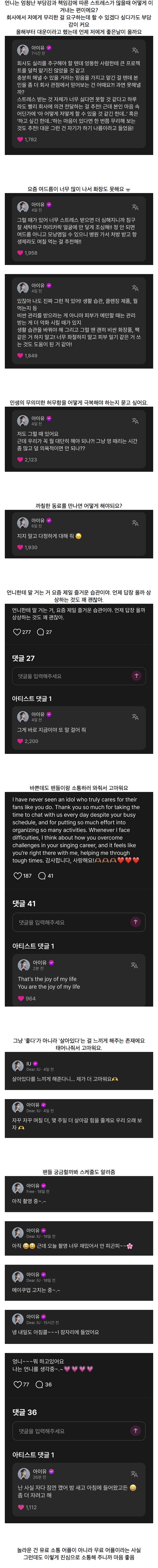 | Subject | 아이유가 소통 어플에서 팬들이랑 나누는 이야기들 |