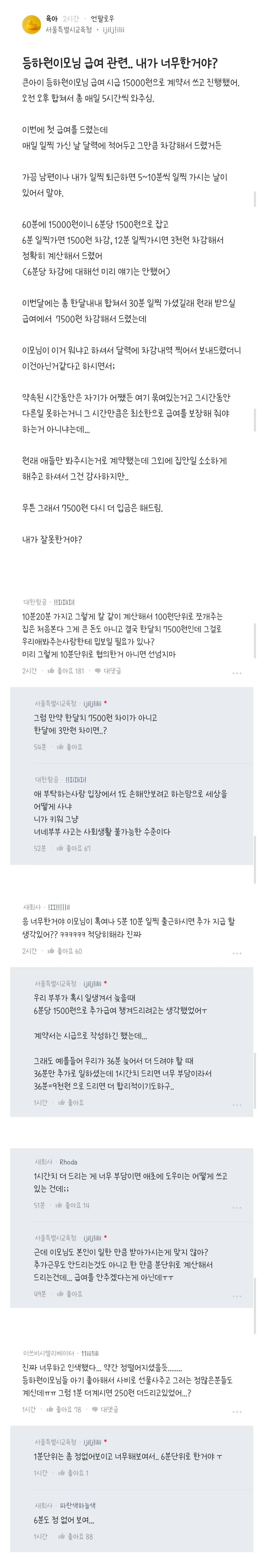| Subject | 등하원이모님 급여 관련.. 내가 너무한거야? |