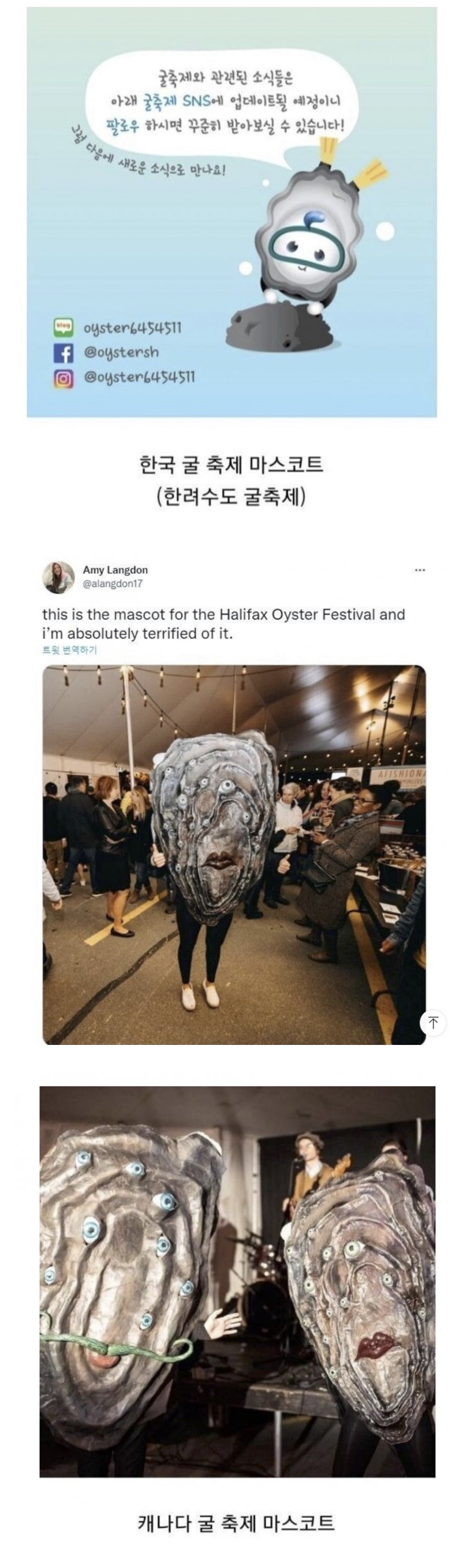 | Subject | 한국 vs 캐나다 굴축제 마스코트 차이 |