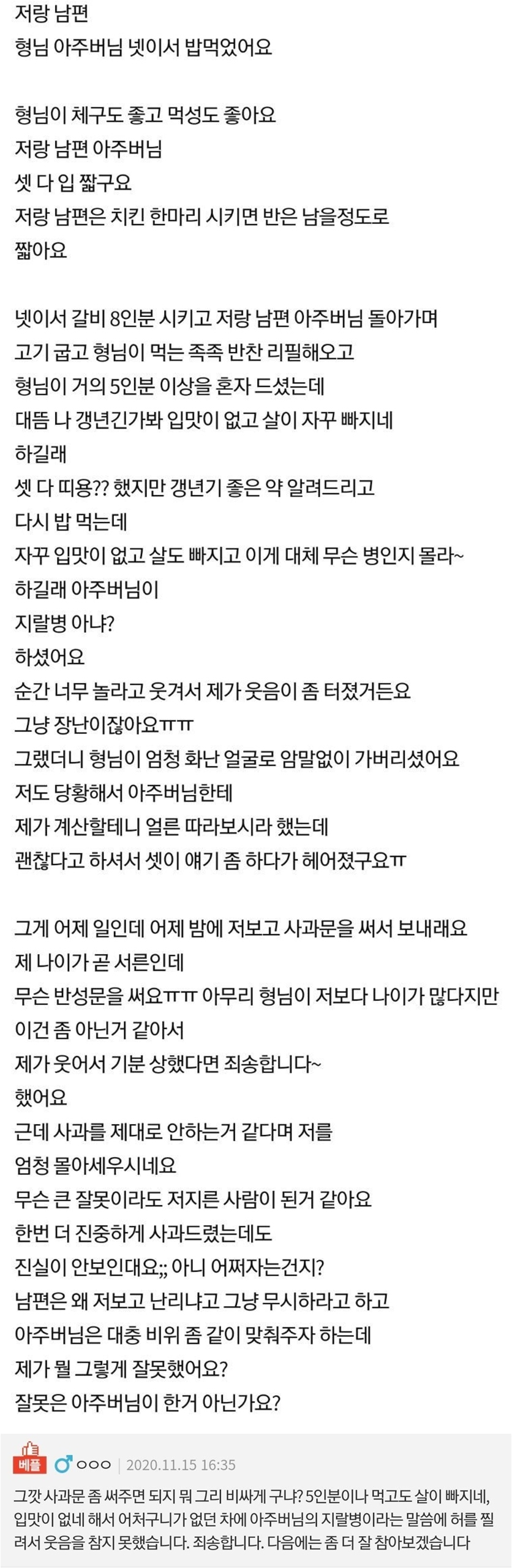 | Subject | 형님이 곧 서른인 저보고 사과문을 쓰래요...jpg |