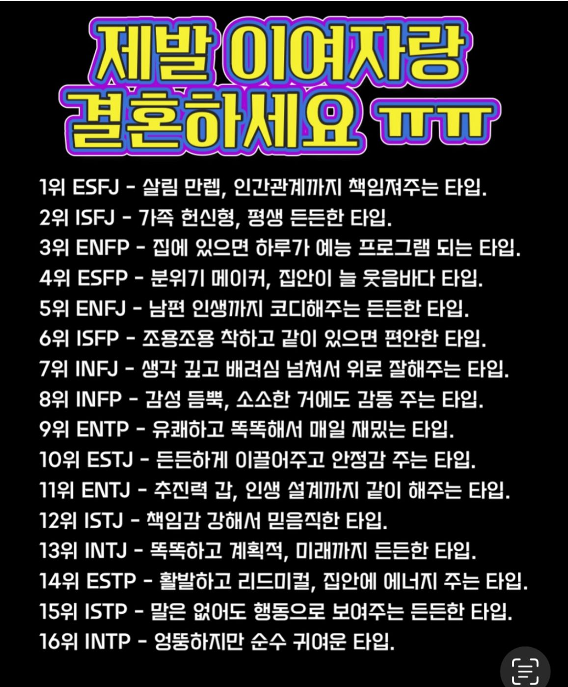 Subject   결혼하기 좋은 여자 mbti