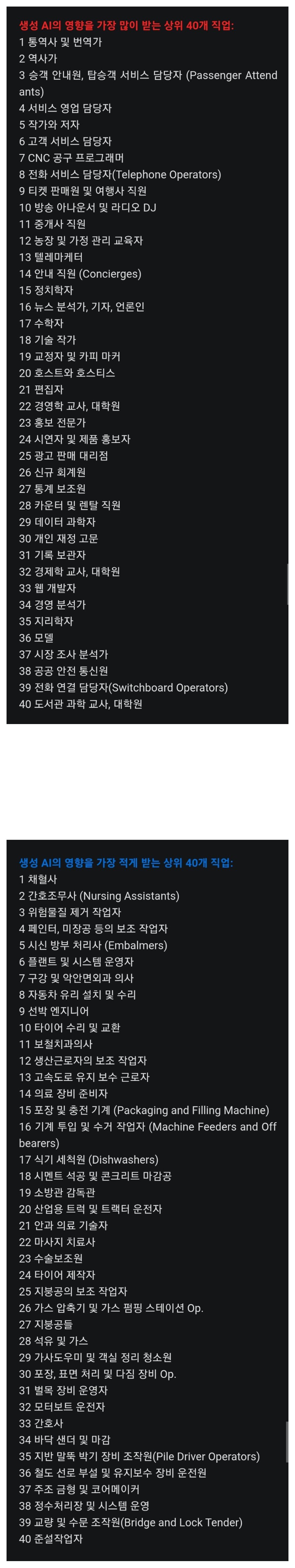 | Subject | 마이크로 소프트 연구진 발표 A.I에 영향을 받는 받지않는 직업군 40 |