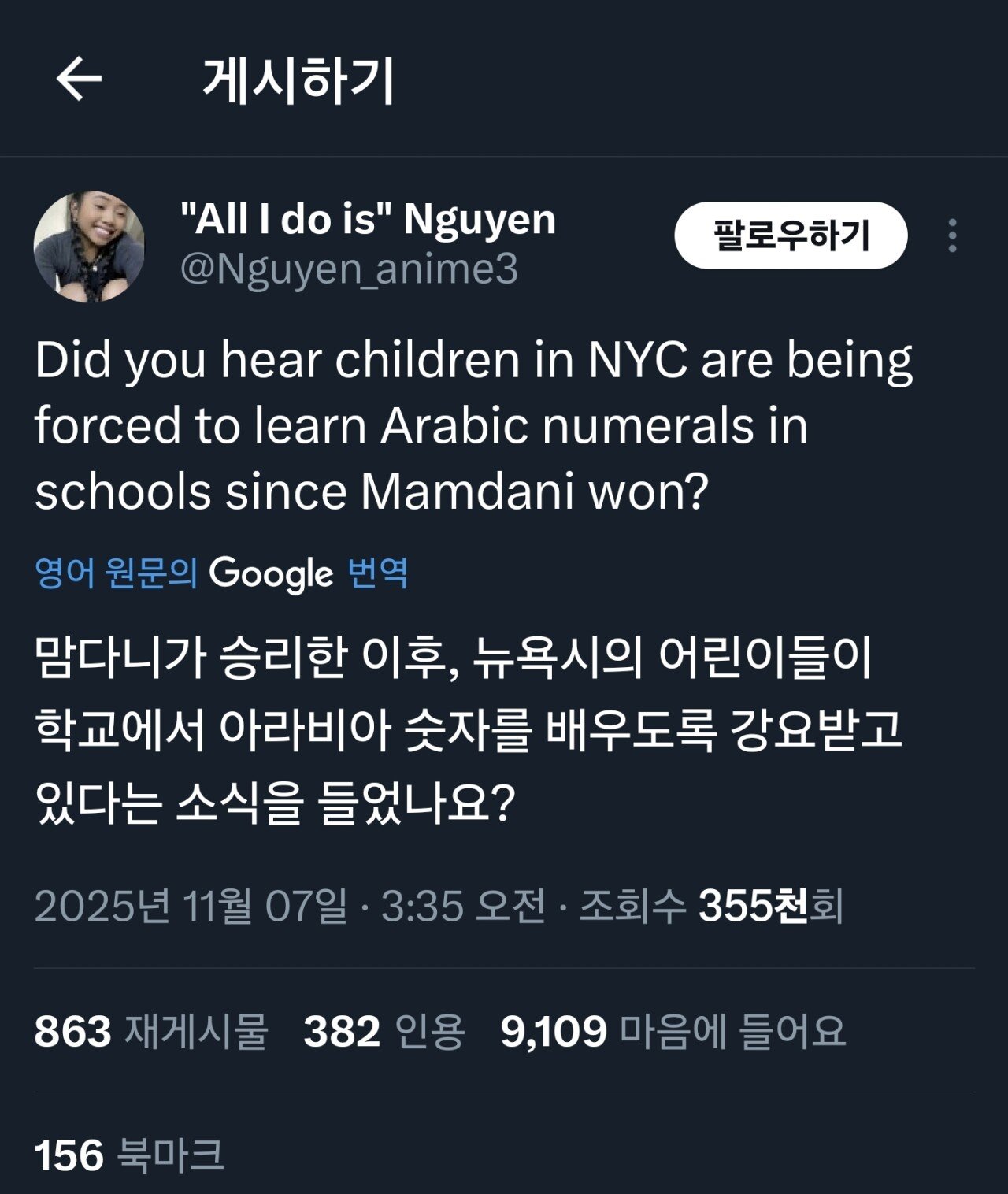 Subject   무슬림 맘다니, 뉴욕시장 당선 이후 초등학생에게 아랍 숫자 가르쳐...