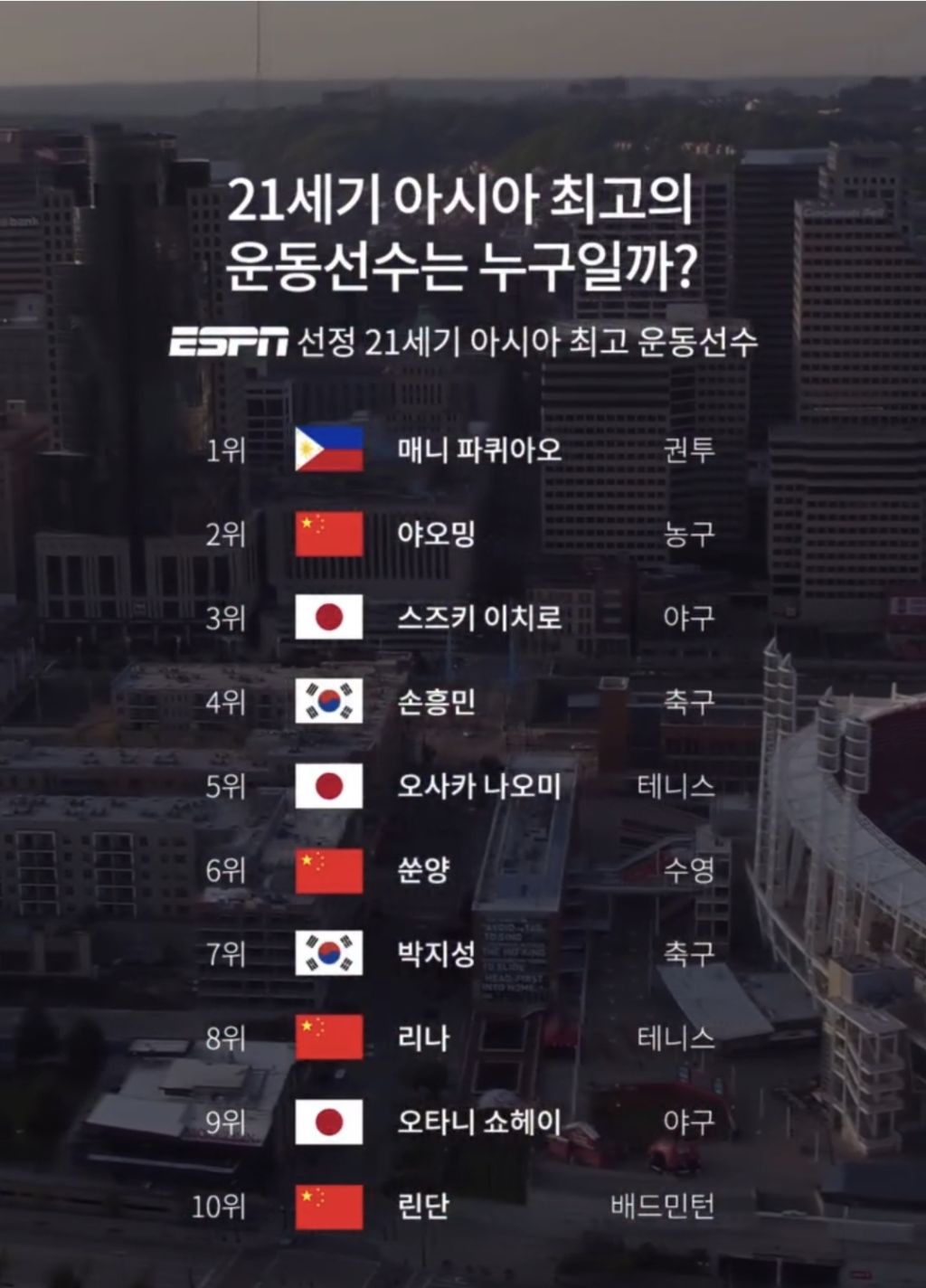 ESPN 선정 21세기 아시아 운동선수 Top 10