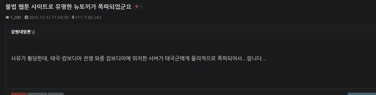 Subject   불법웹툰사이트 뉴토끼 폭파사유