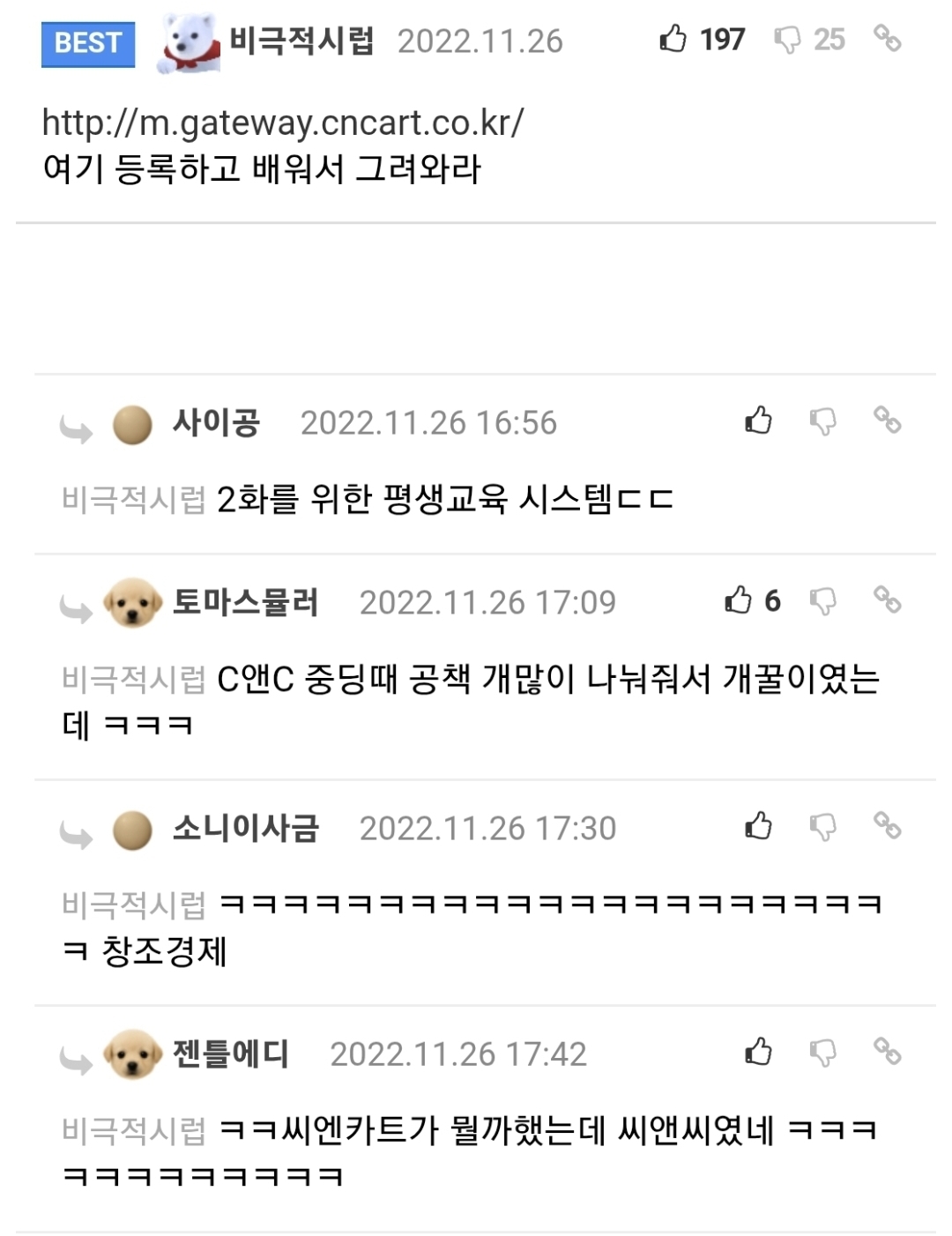 - 유머가 아닌 펌글, 영상 등 가볍게 볼 수 있는 글들도 게시가 가능합니다.