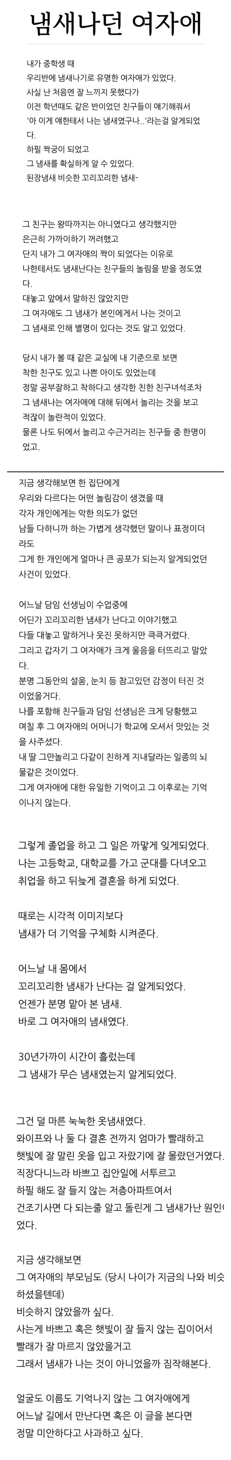| Subject | 중학교 때 냄새나던 여자애 |