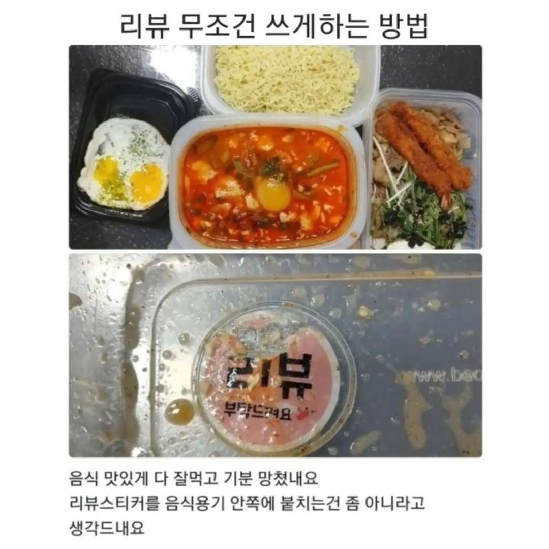 Subject   음식 리뷰를 무조건 쓰게하는 방법 ㅋㅋㅋ