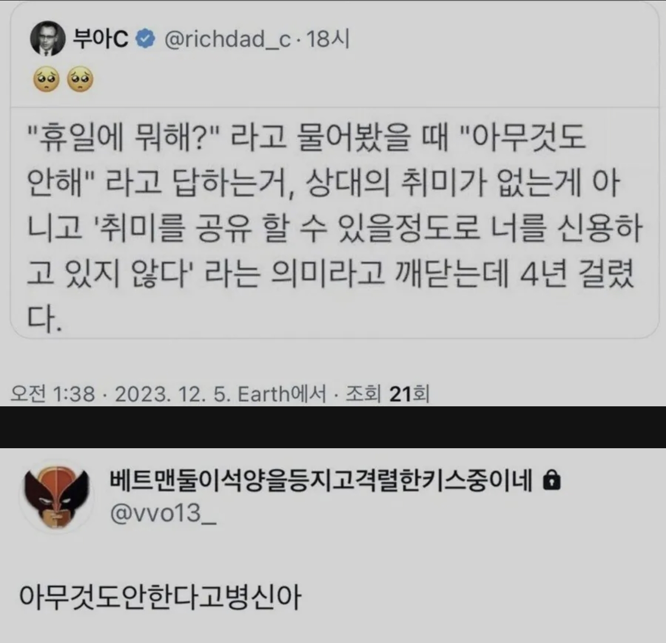 | Subject | 드디어 4년만에 내향인을 이해했다는 외향인 |
