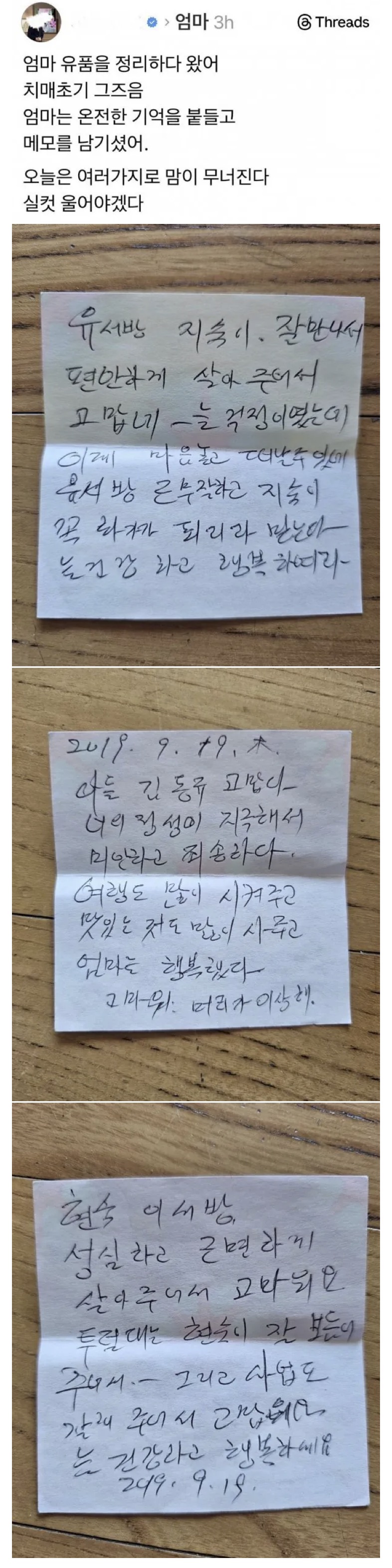 Subject   엄마 유품을 정리하다 나온 메모