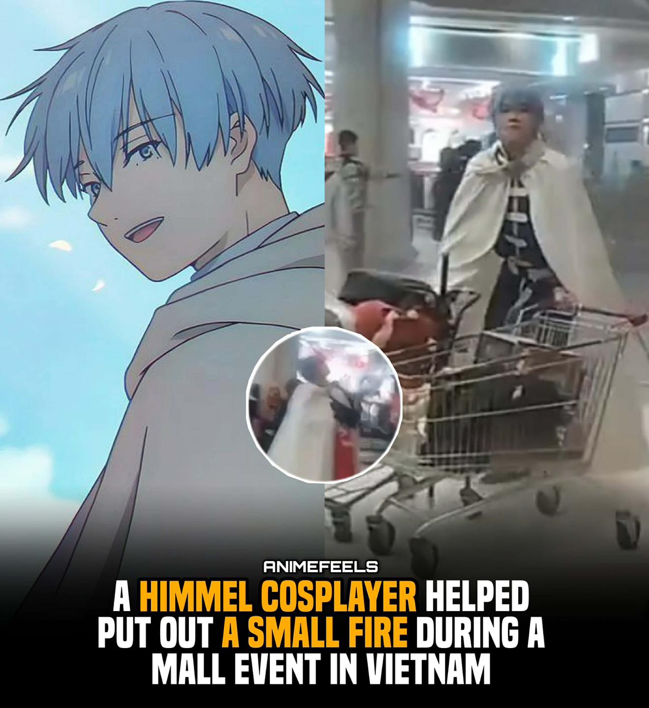 https://x.com/SomosKudasai/status/2021623389996093668 베트남에서 쇼핑몰 화재가 발생하자 힘멜의 코스플레이어가 소화기로 화재를 조기 진압했다고 합니다. [용사 힘멜이라면 그렇게 했을 테니까] 1