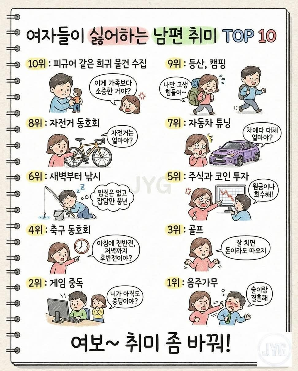 여자들이 싫어하는 남편 취미 Top10 0