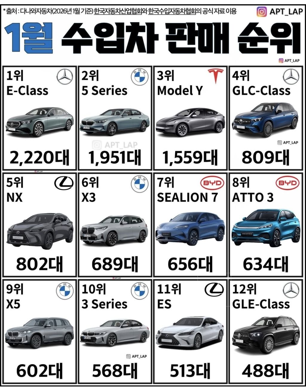 Subject   26년 1월 수입차 판매 순위.jpg