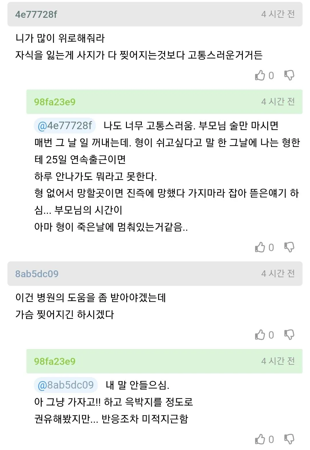 70968 형이 과로사하고 집안이 망가진 거 같음 2 + swear 26/03/31 258 0
