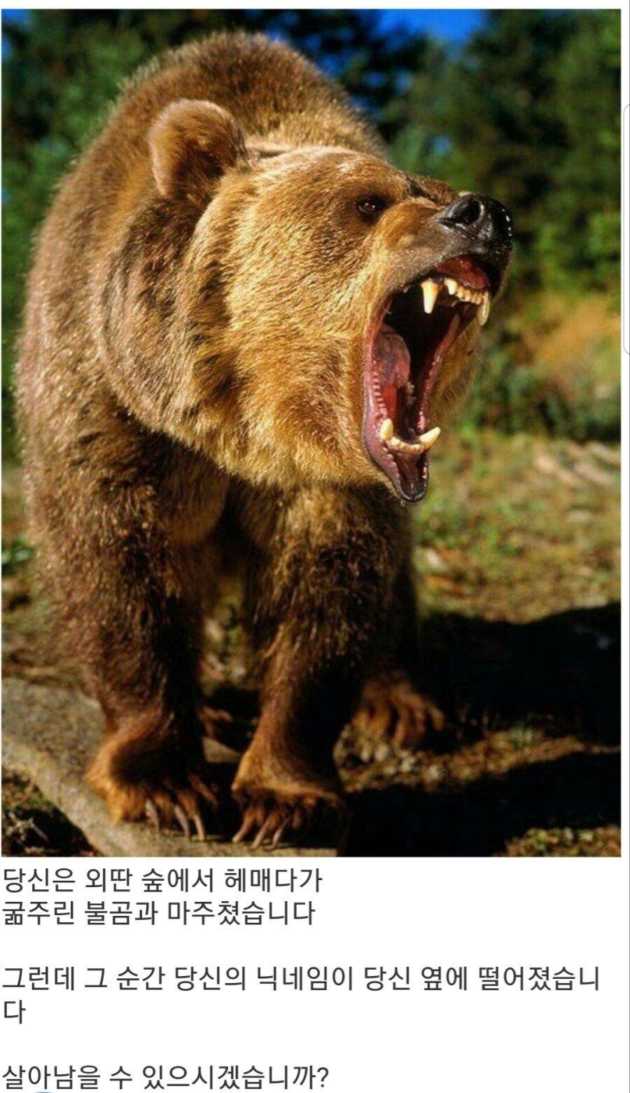 | Subject | 당신은 숲에서 굶주린 곰과 마주쳤습니다 |