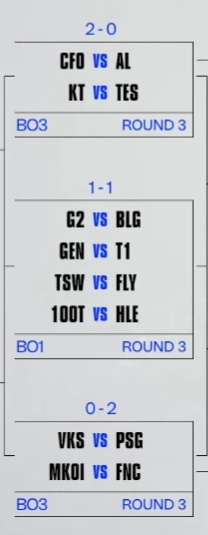 스위스 재미있군요. 2승 팀이 Bo3에서 계속 1:2로 패하면 9경기를 하는군요. 2