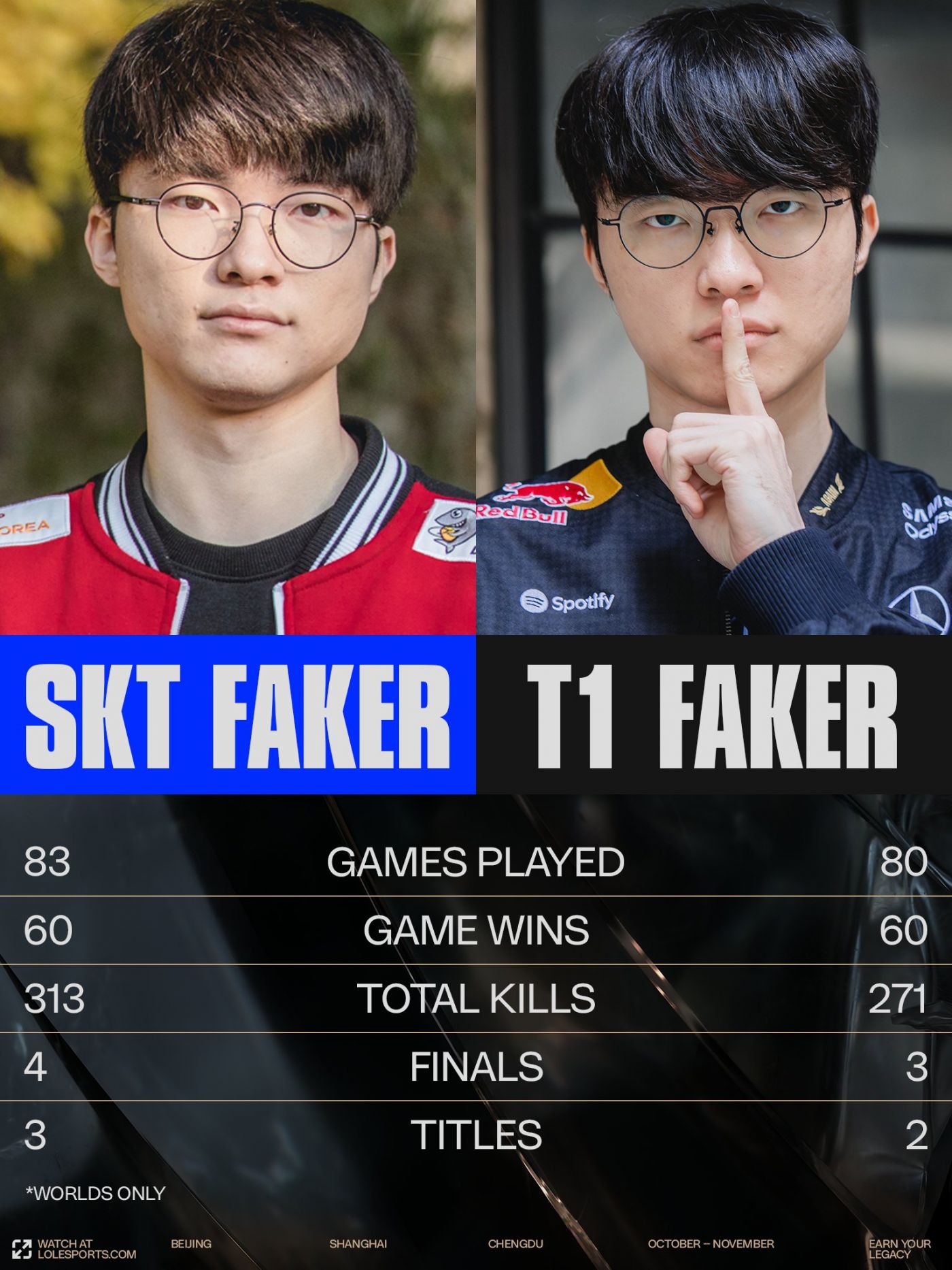아따 이 양반들 결승도 안 갔는데 씨게 부두술 걸어버리시네...... https://x.com/lolesports/status/1984837814681550861 6년 만에 SKT Faker의 월드 챔피언십 유산에 도전하는 선수가 나타났습니다. T1 Faker. 0