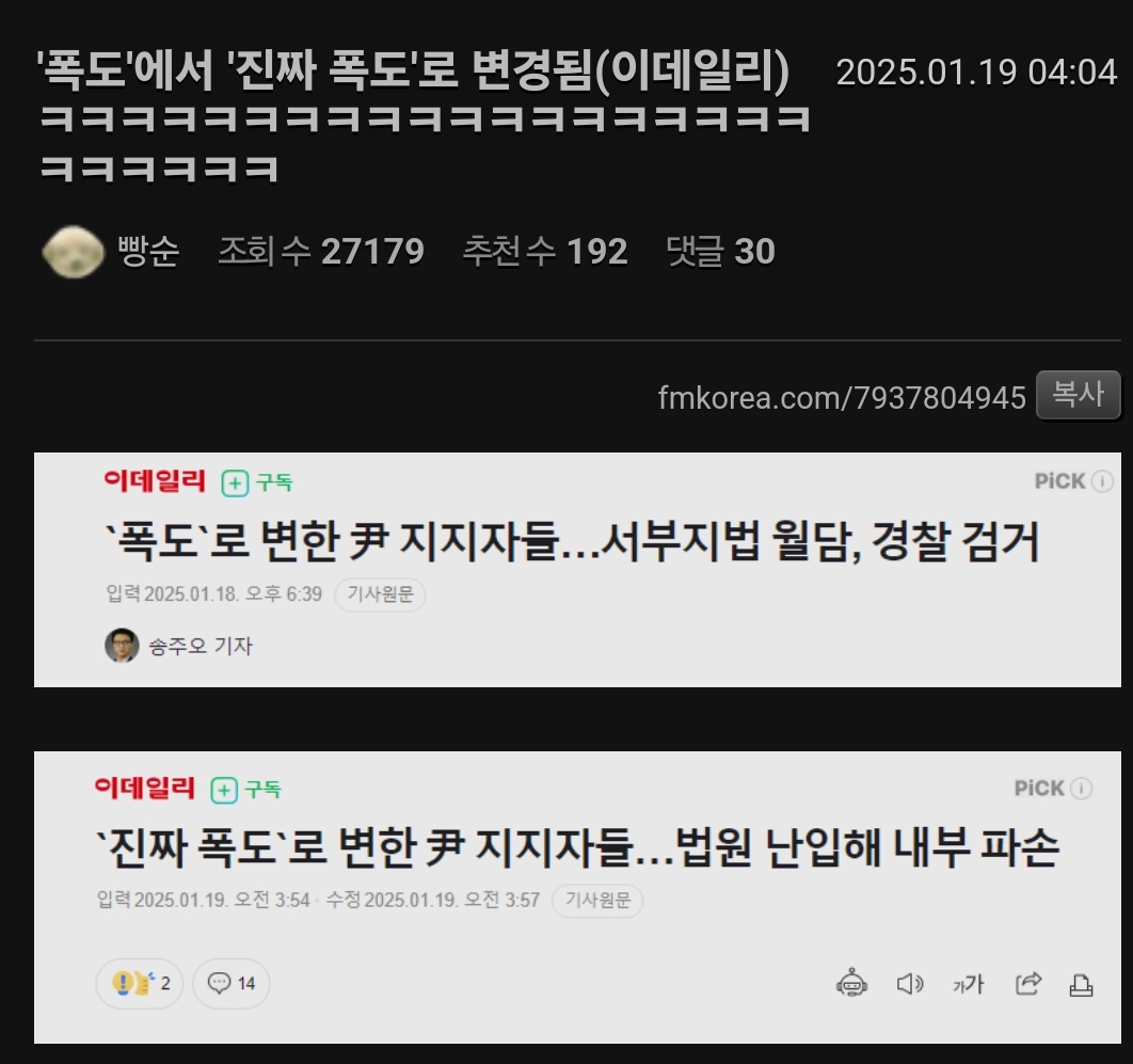 윤 지지자들 공수처 차량 공격하고 경찰관 폭행