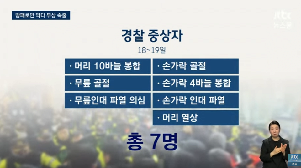 Subject   머리 10바늘 꿰맨 순경, 무릎 골절 경장...경찰에 쇠파이프 휘두르고 벽돌 던진 지지자들