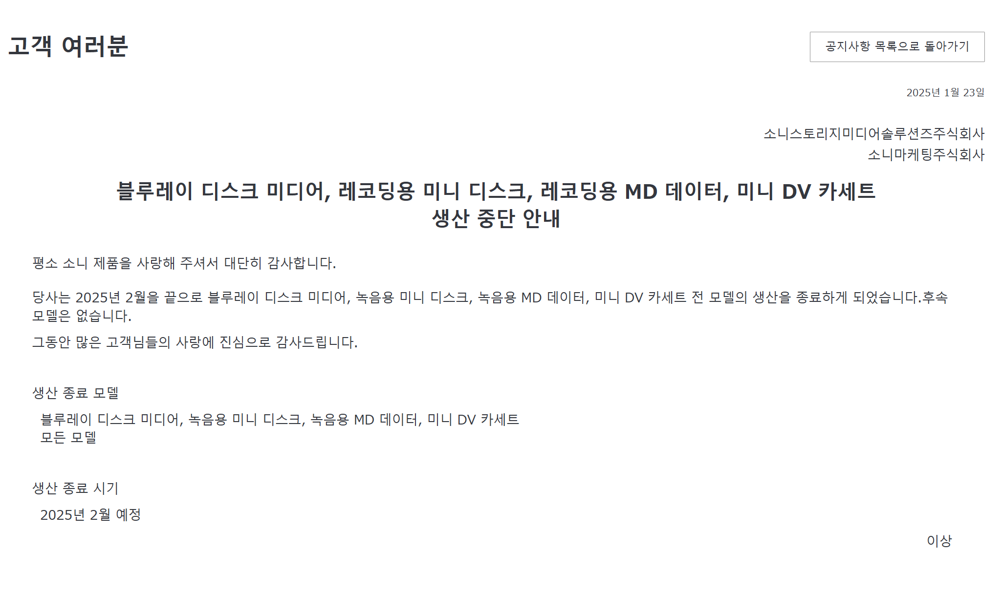 작년에 나왔던 얘기지만, 공식적으로 다음 달로 끝인가 보군요. LG도 2019년 삼성에 이어서 작년 말에 블루레이 플레이어 생산 중단하고 사업 철수했죠.