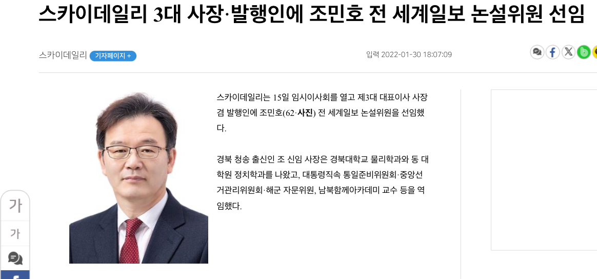 참고로 저 사람은 최근 가짜뉴스로 유명해진(?) 스카이데일리의 등기상 대표이사이기도 합니다. (등기 말소한다고)