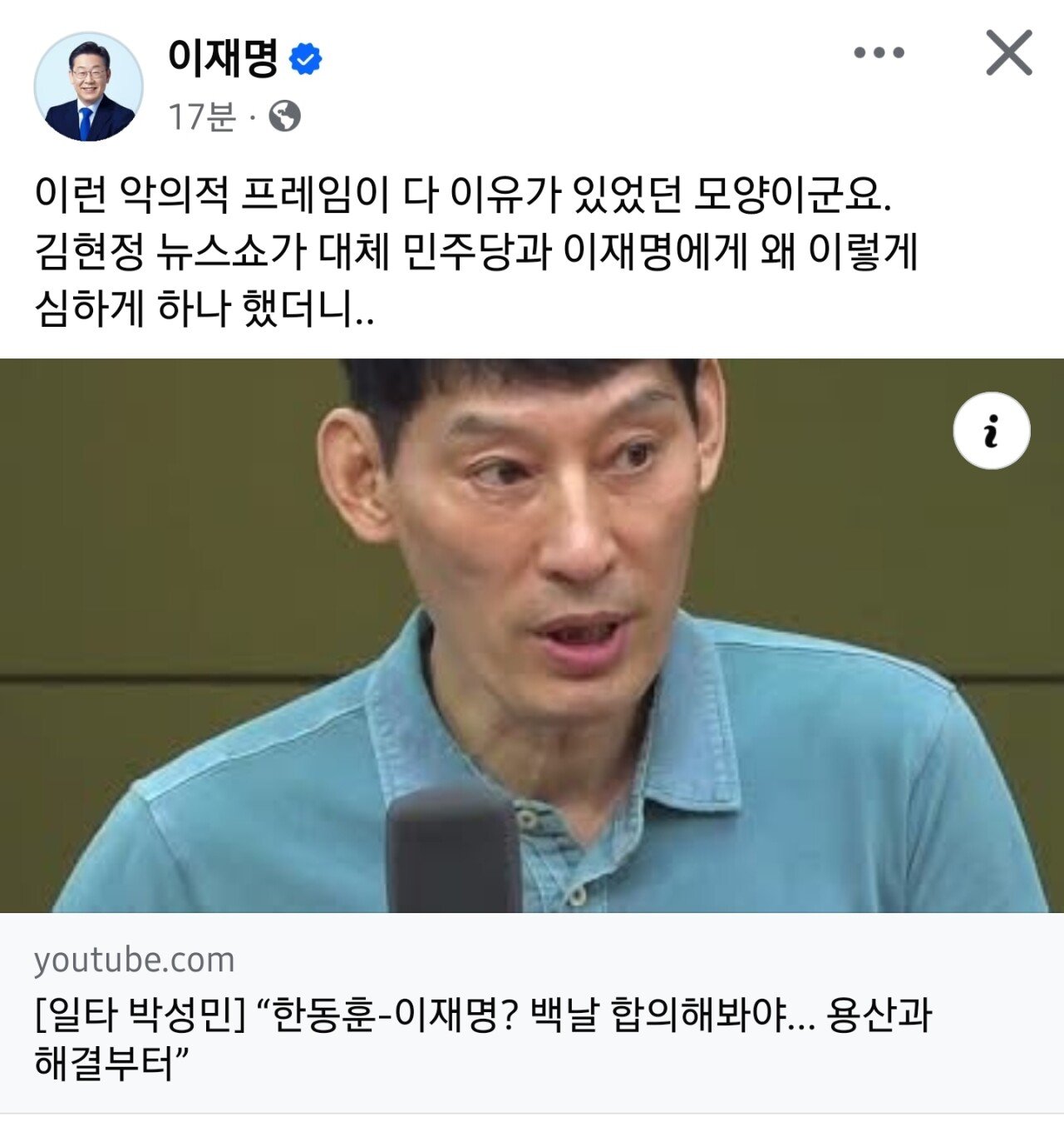 [3] 아래 영상은 이재명 대표가 어제 페이스북에 게시한 쇼츠 영상입니다.