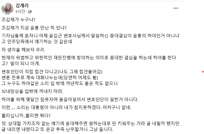 Subject   "망상가 윤석열, 헌재에서 전원일치 파면할 것"