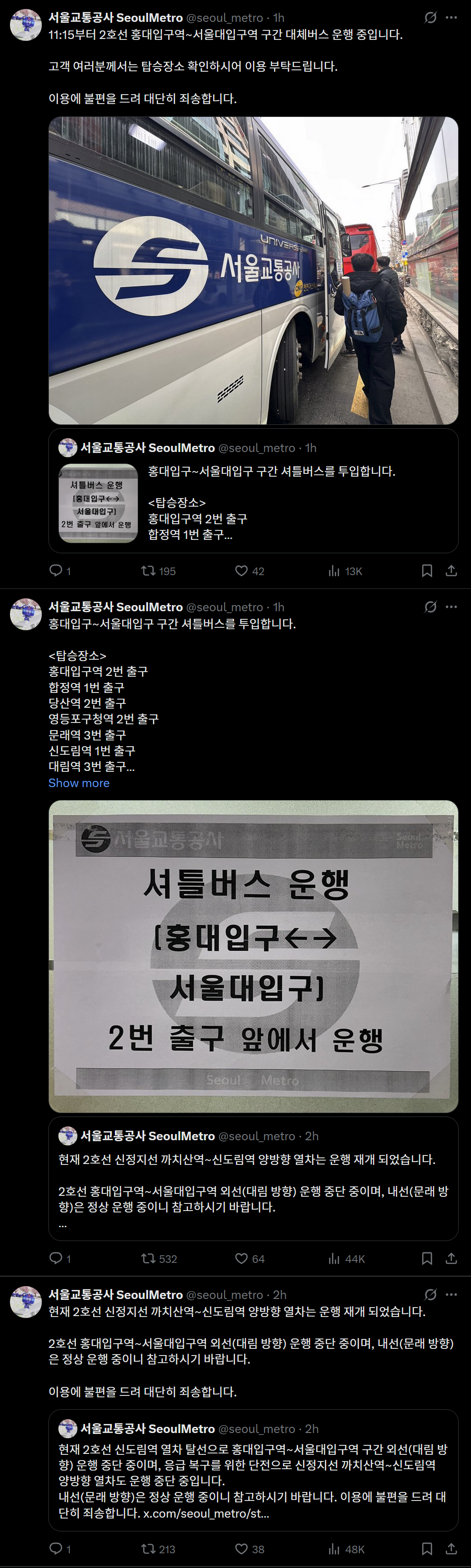1685 사회지하철 2호선 신도림서 탈선…홍대입구∼서울대 외선 운행 중단 9 다군 25/03/23 4119 0