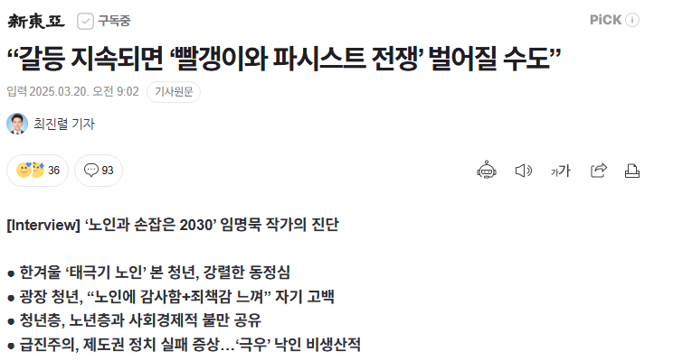 | Subject | 임명묵- 광장 청년, “노인에 감사함+죄책감 느껴” 자기 고백 |