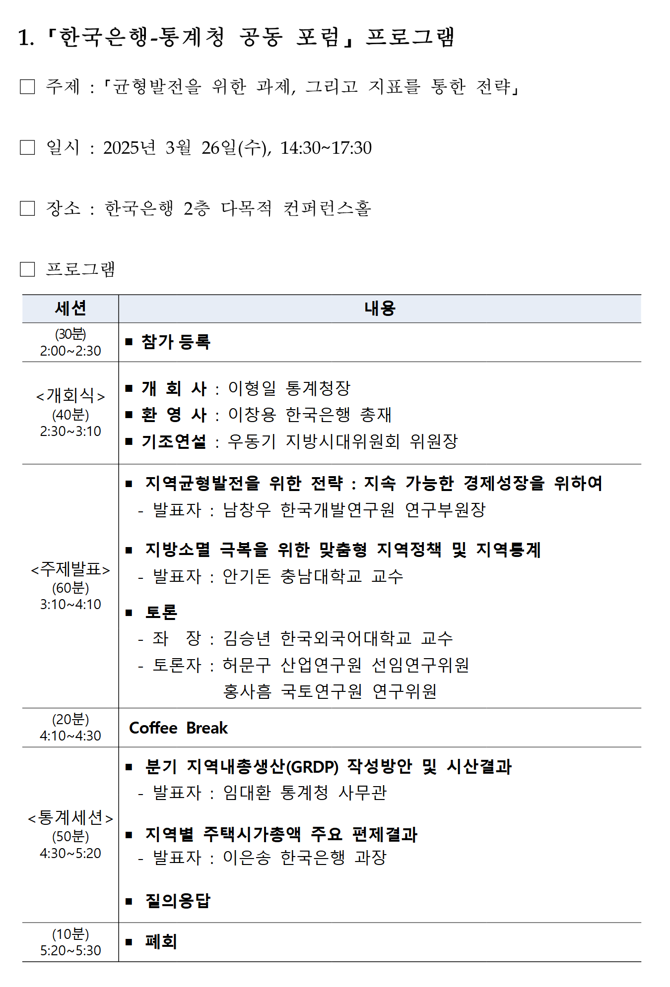 발표 자료집은 포럼 종료 후에 등록 사이트에서 다운로드 가능하다고 합니다.