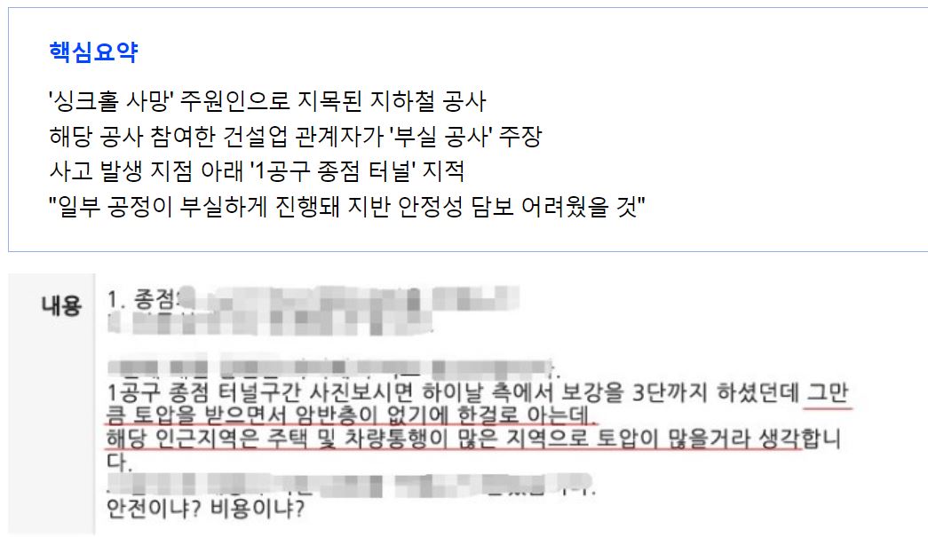 이번에 싱크홀 관련 기사에서 미리 민원 넣으신 분이 계셨던데