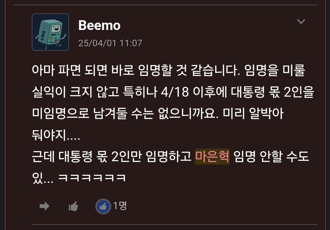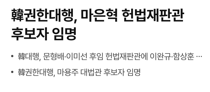 1840 정치한 대행, 헌법재판관 3인과 대법관 지명 및 임명 75 다군 25/04/08 5015 0