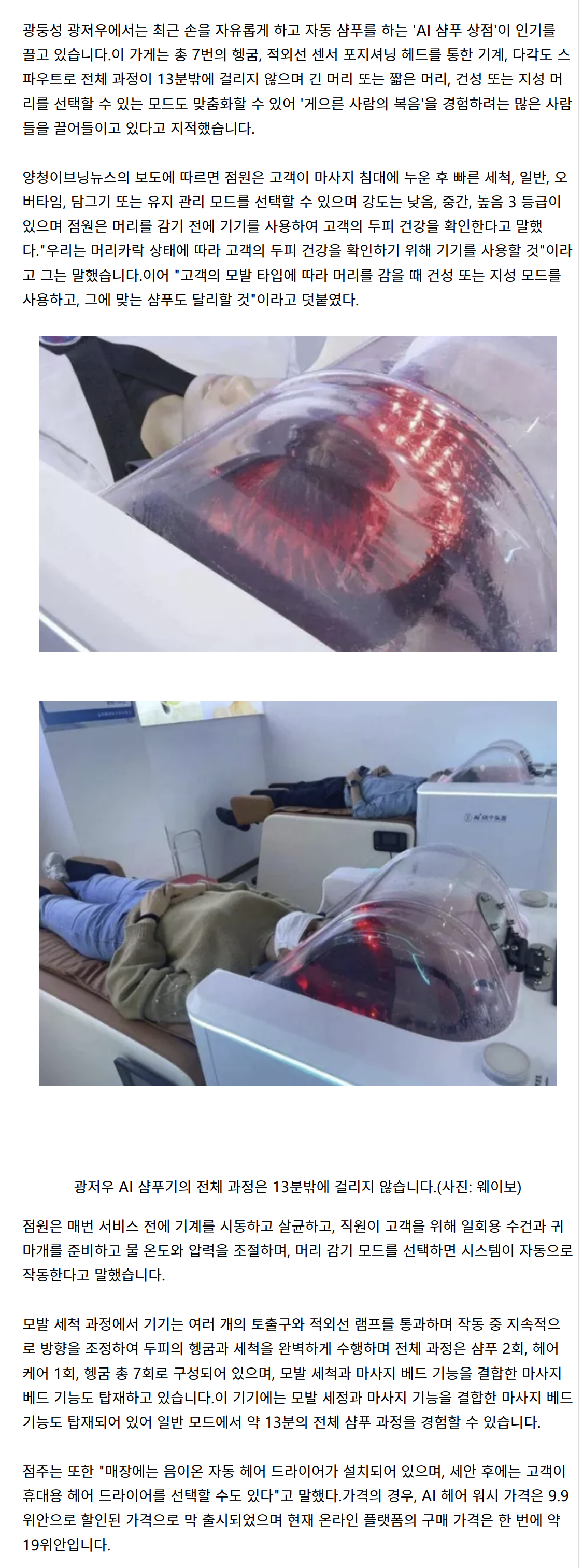 中 광저우에 기계가 머리 감겨주는 'AI샴푸전문점' 등장