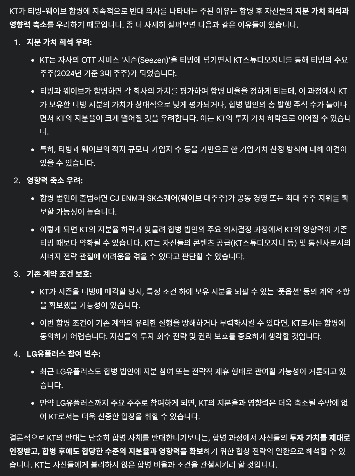 경제KT "티빙-웨이브 합병, 티빙 주주가치에 부합하는지 의문" 4 |