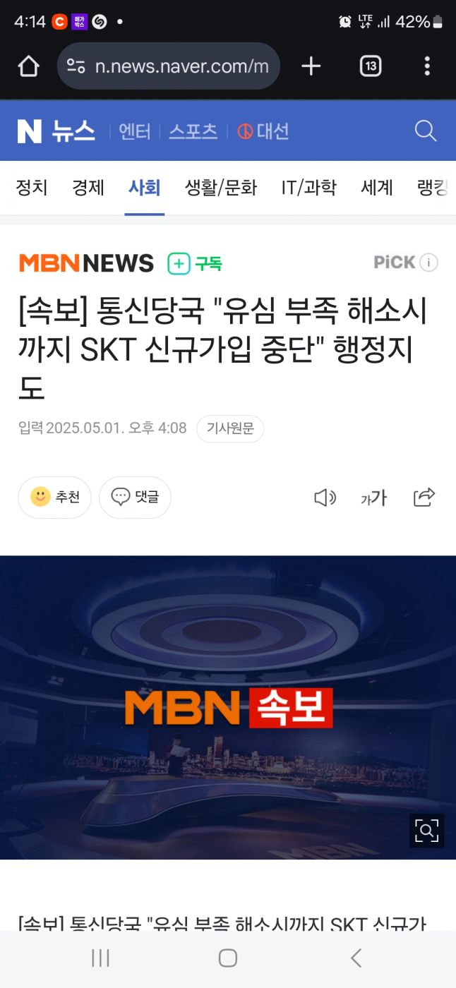 경제속보] 통신당국 "유심 부족 해소시까지 SKT 신규가입 중단" 행정지도 15 |