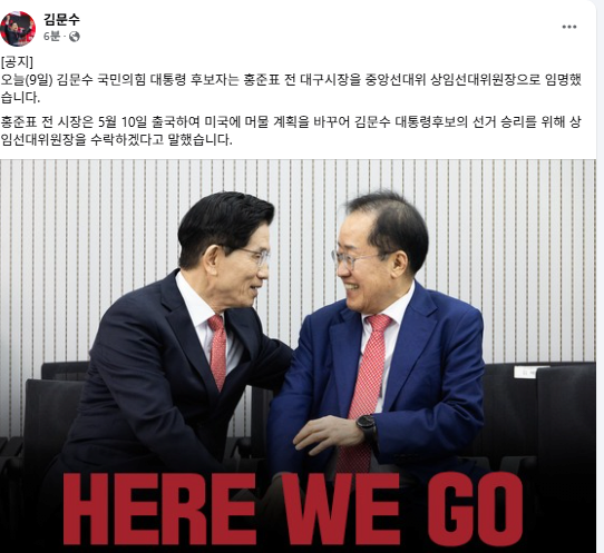 정치김문수, 홍준표 전 대구시장 상임선대위원장으로 임명 11 |