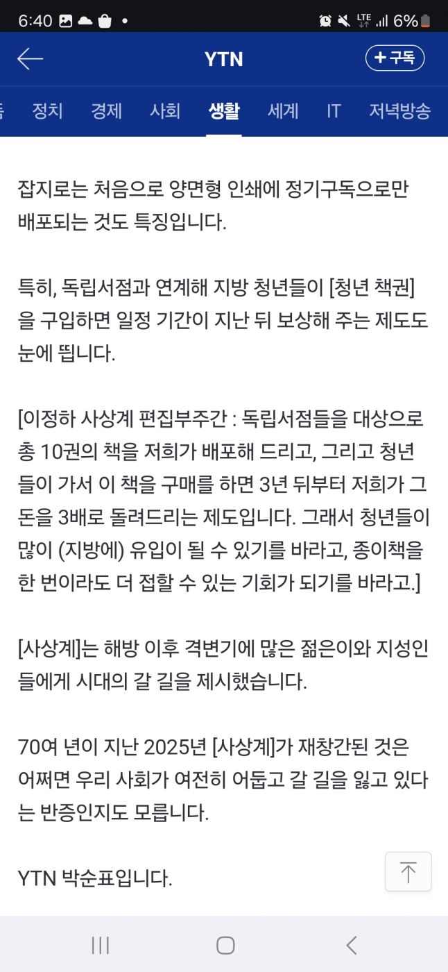 | Subject | 사상계, 55년 만에 복간..."종합 지식 플랫폼 지향" |