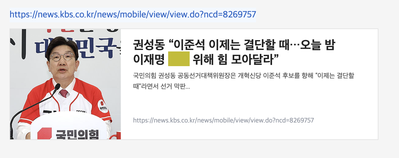 | Subject | 권성동 “이준석 이제는 결단할 때…오늘 밤 이재명 막기 위해 힘 모아달라” |
