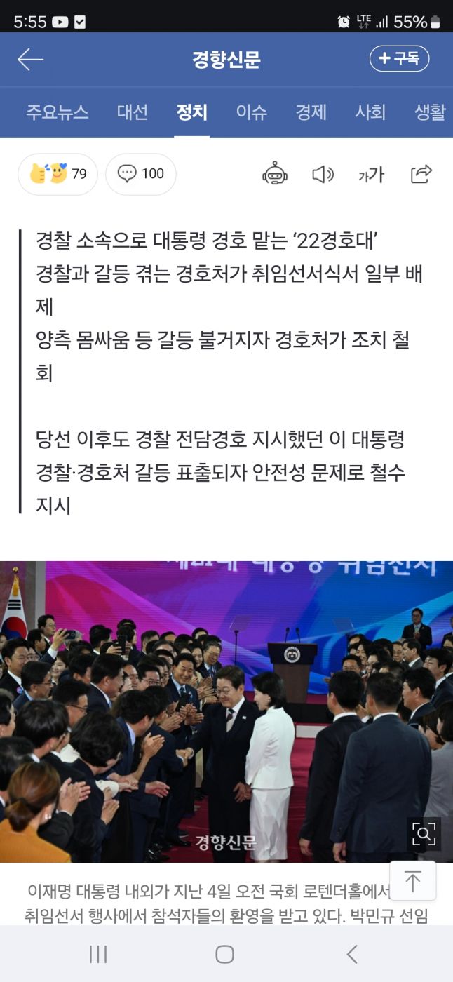 | Subject | 단독]경찰 ‘22경호대’ 업무 복귀···이 대통령 최근접 경호, 경호처 전담으로 전환 |