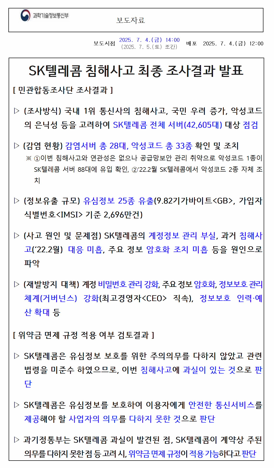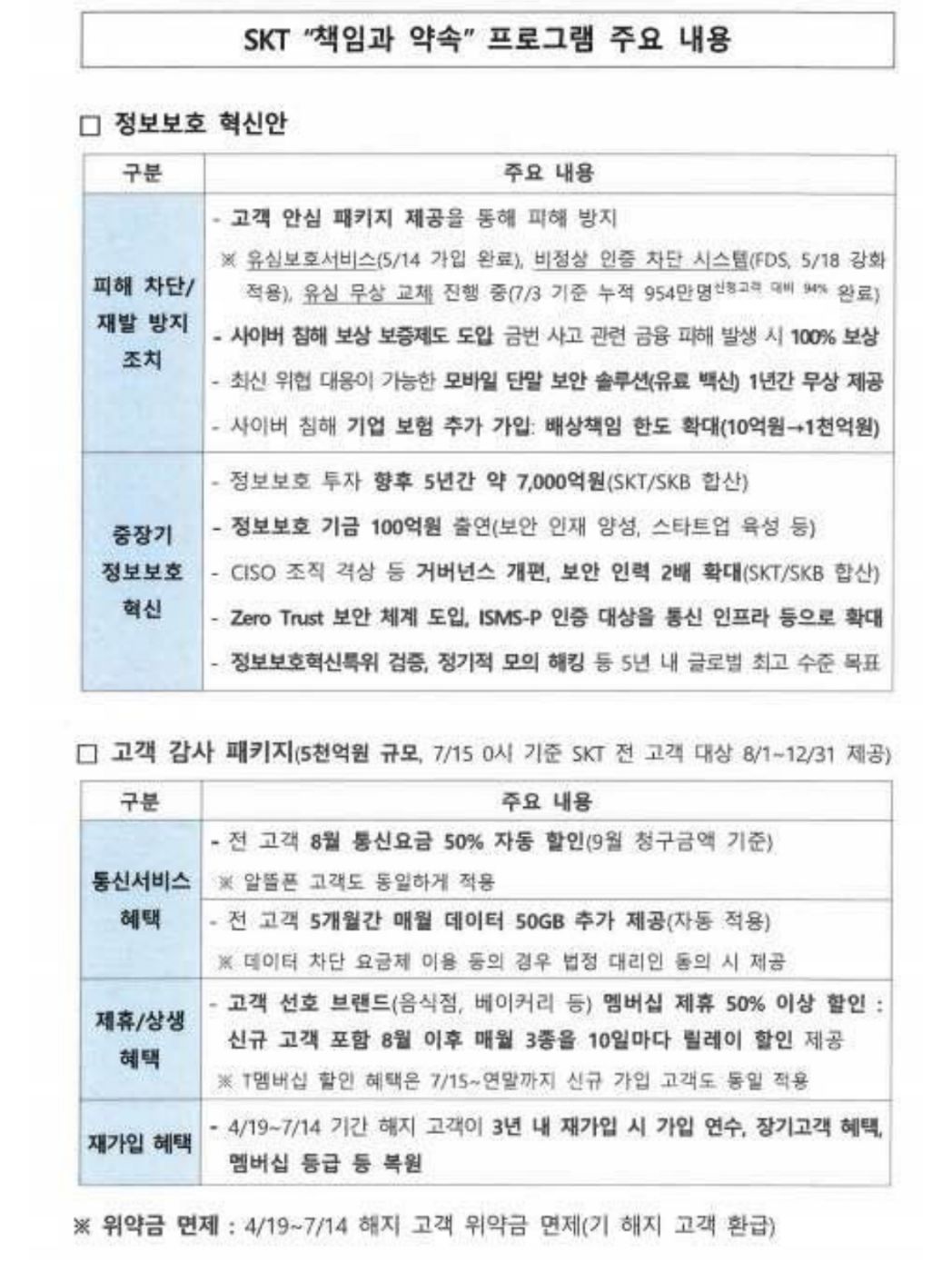 솔까 SKT도 이건 소송하면 질거라고 생각은 했을 겁니다. 계약해지해도 고객에게 위약금 청구 걸지 않았을 수 있어요. 하지만 미리 위약금 면제해준다 하면 더 많이 빠져나갈 것이고.. 어물쩡하고 있다보면 시간지나서 당장 유심교체되고 어느정도 해결되고 나면 옮기는 것도 귀찮으니까 어영부영 남아있는 사람들이 더 많을거고..그래서 일단은 위약금 내야한다고 말하는게 이익이라고 계산했을거에요. 정부도 그래서 애매하게 얘기하다가 이제 좀 정리되었으니까 말할만해진거고