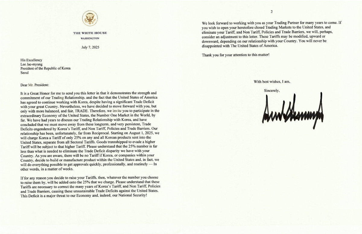 국제트럼프 "韓에 8월1일부터 25% 상호관세 부과"…사실상 협상 연장(종합) 7 |