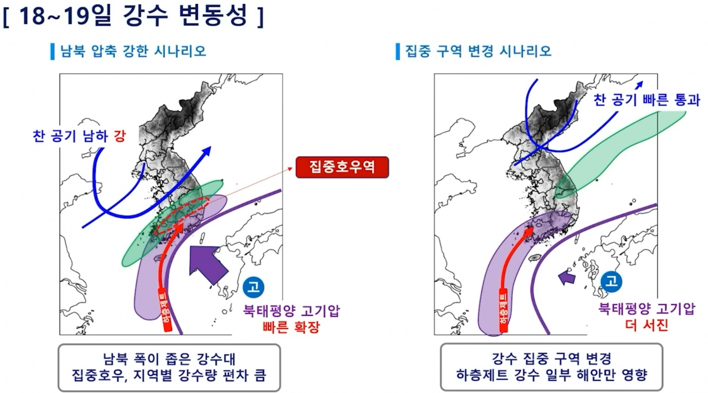 경북도 밤에 다시 비가 많이 올 것 같다는데, 어제 발표된 예상 시나리오 중에 남북 압축 강한 시나리오 쪽에 가까워지는 것 같군요.