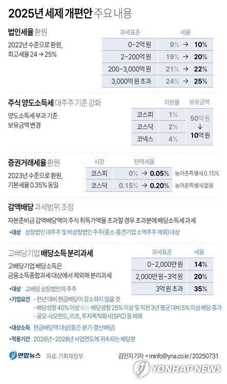 Subject   법인세 올리고 증권거래세 0.2% 환원…첫 세제개편안 발표